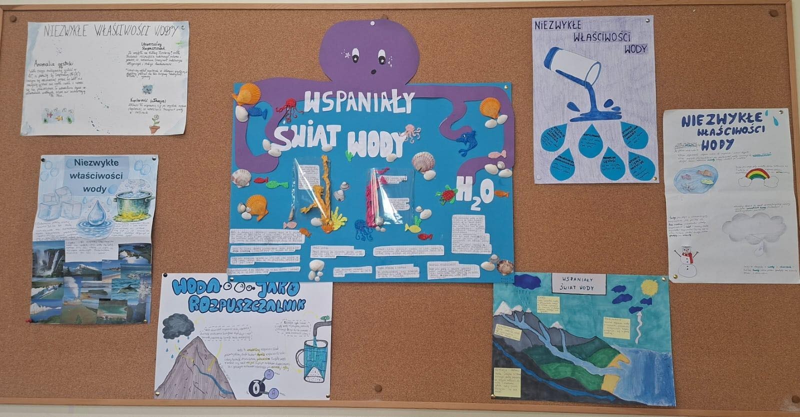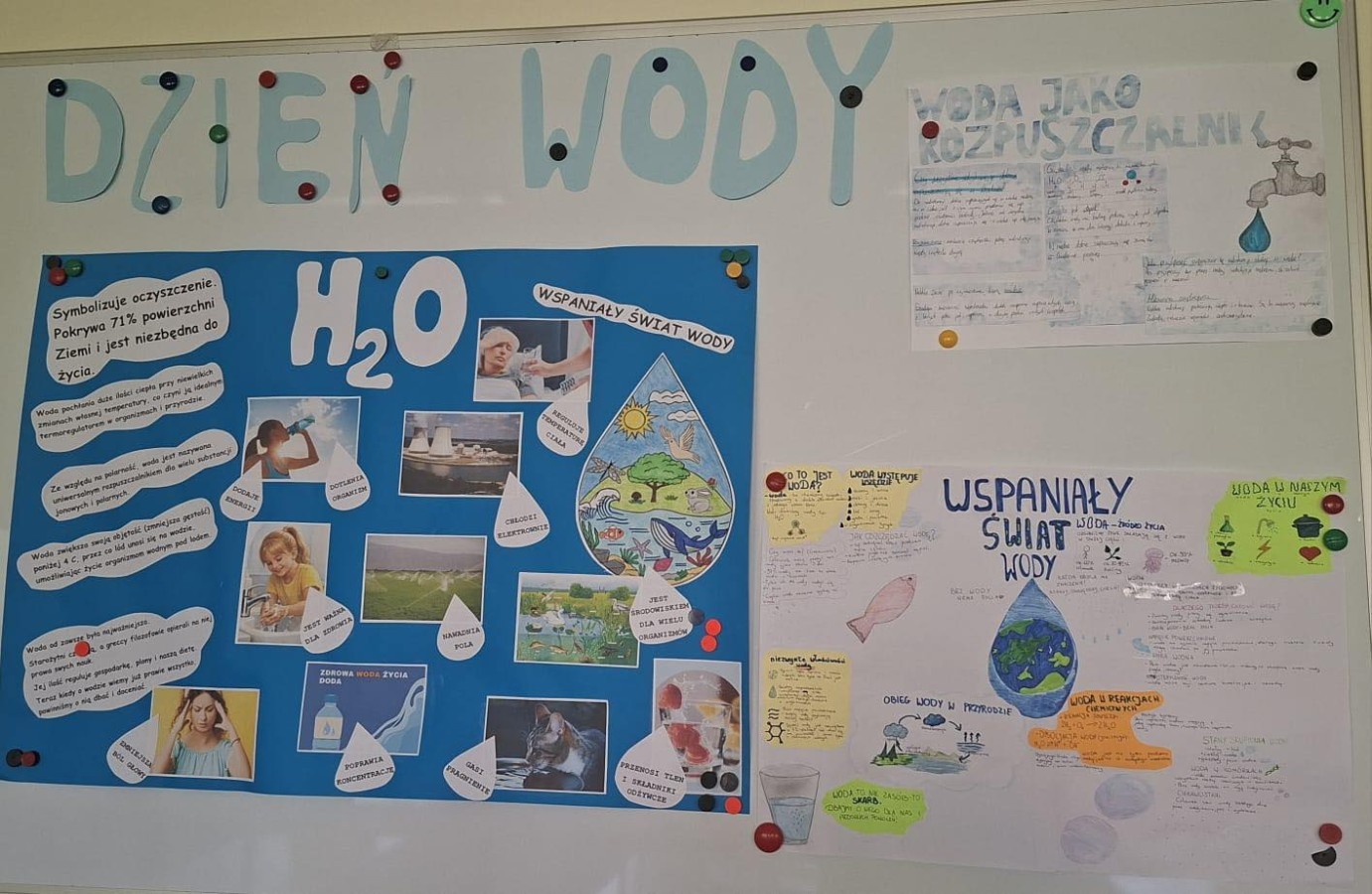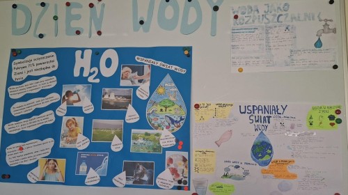 W ramach szkolnych obchodów Światowego Dnia Wody uczniowie klas 7a, 7b, 7c i 7d wykonali projekty z chemii. Plakaty na temat wody można podziwiać w sali 50 oraz na korytarzu II piętra obok sali chemicznej.