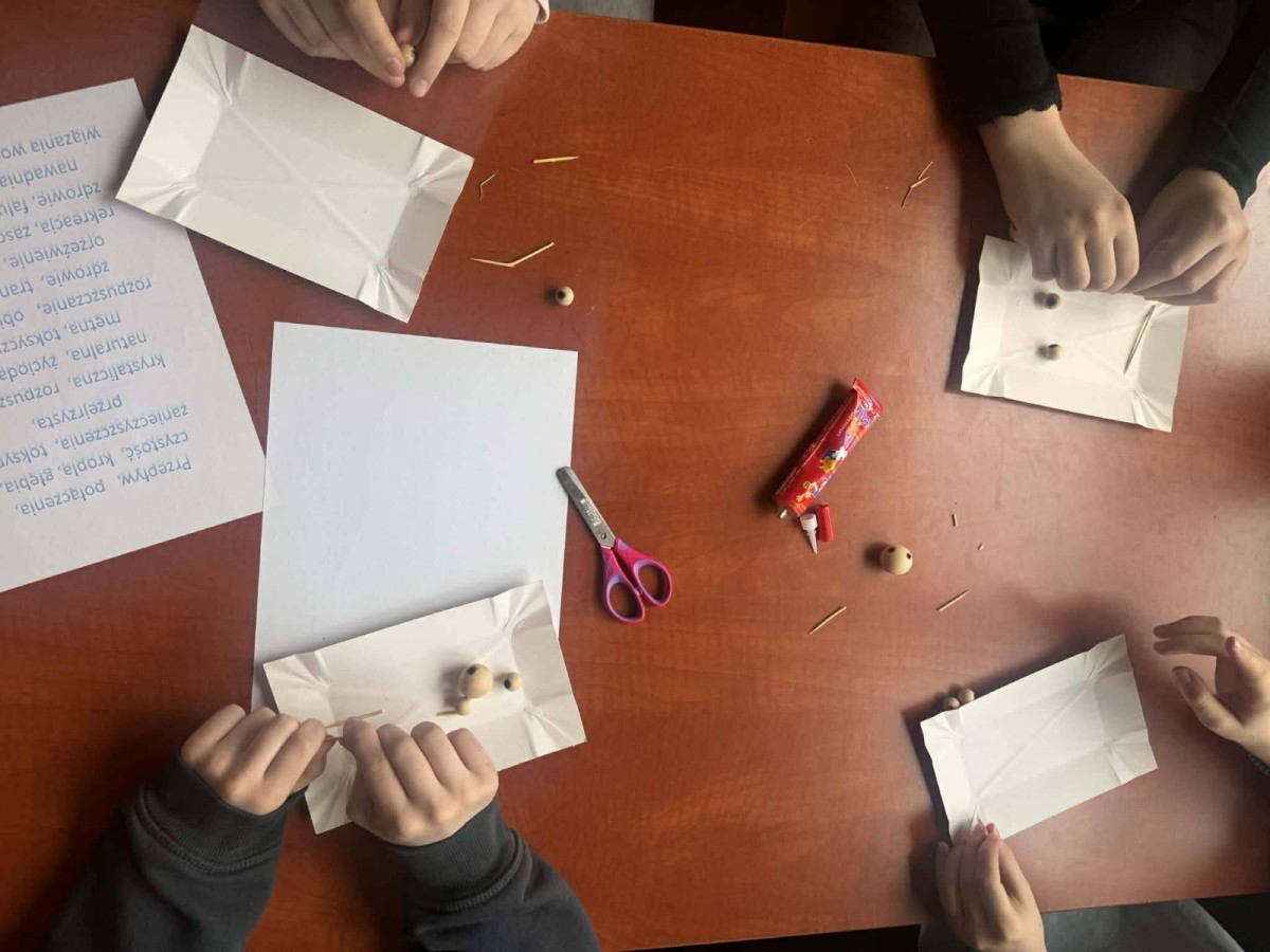 Ponadto dnia 24 kwietnia 2026 r. w klasach 7a, 7c, 7d i 8d odbyły się warsztaty pt. "Budowa cząsteczki wody", które przeprowadzili pracownicy Zakładu Aqua.