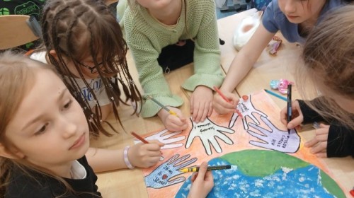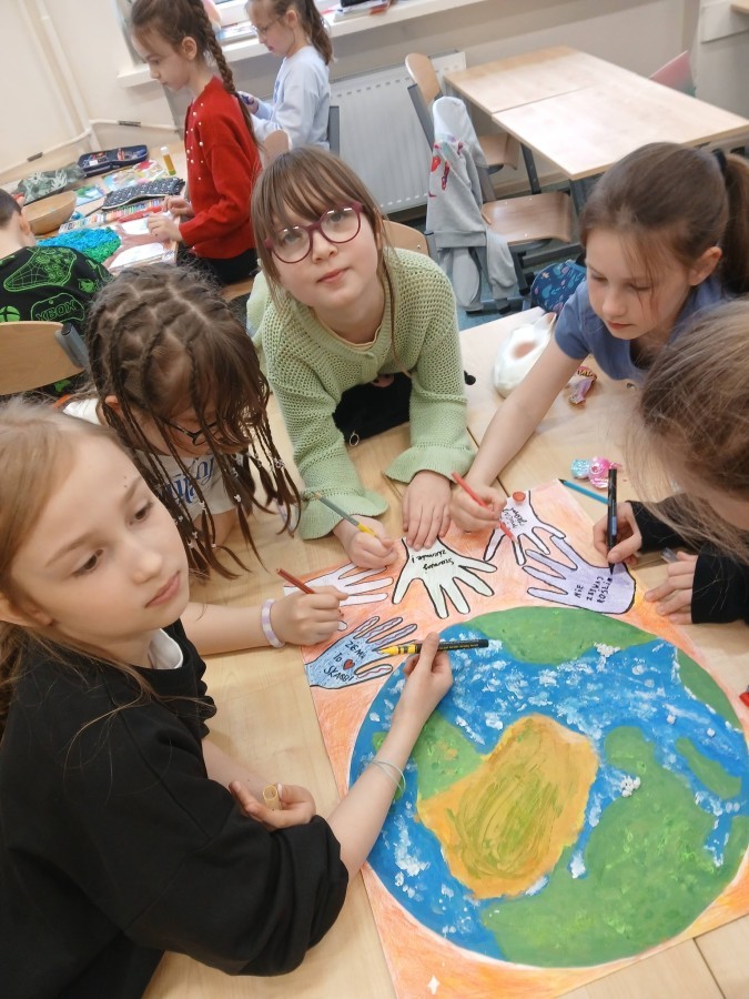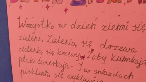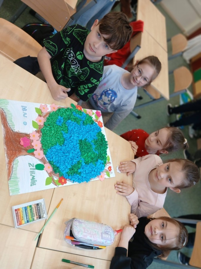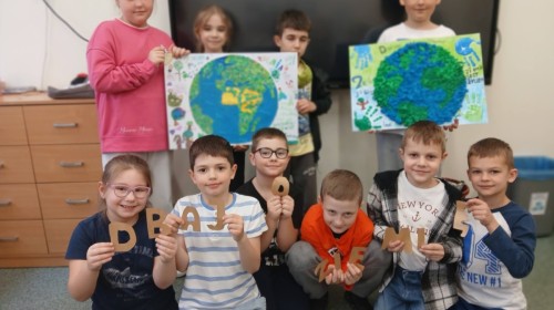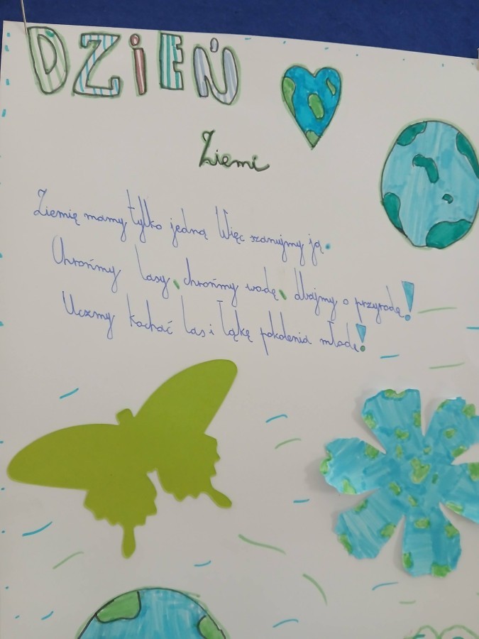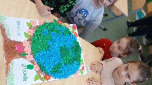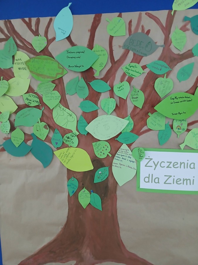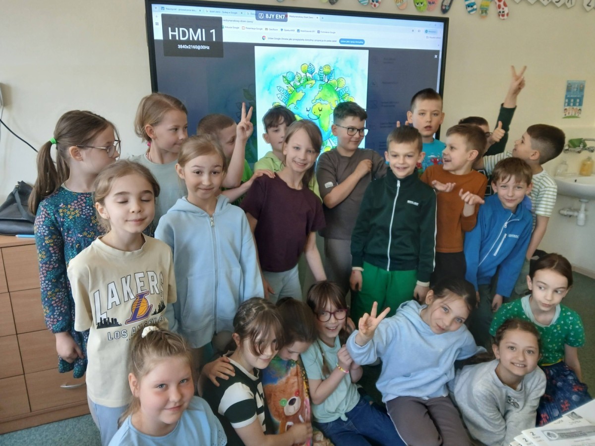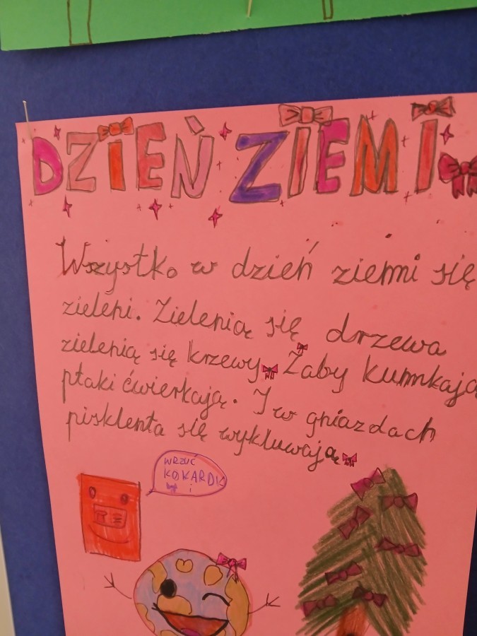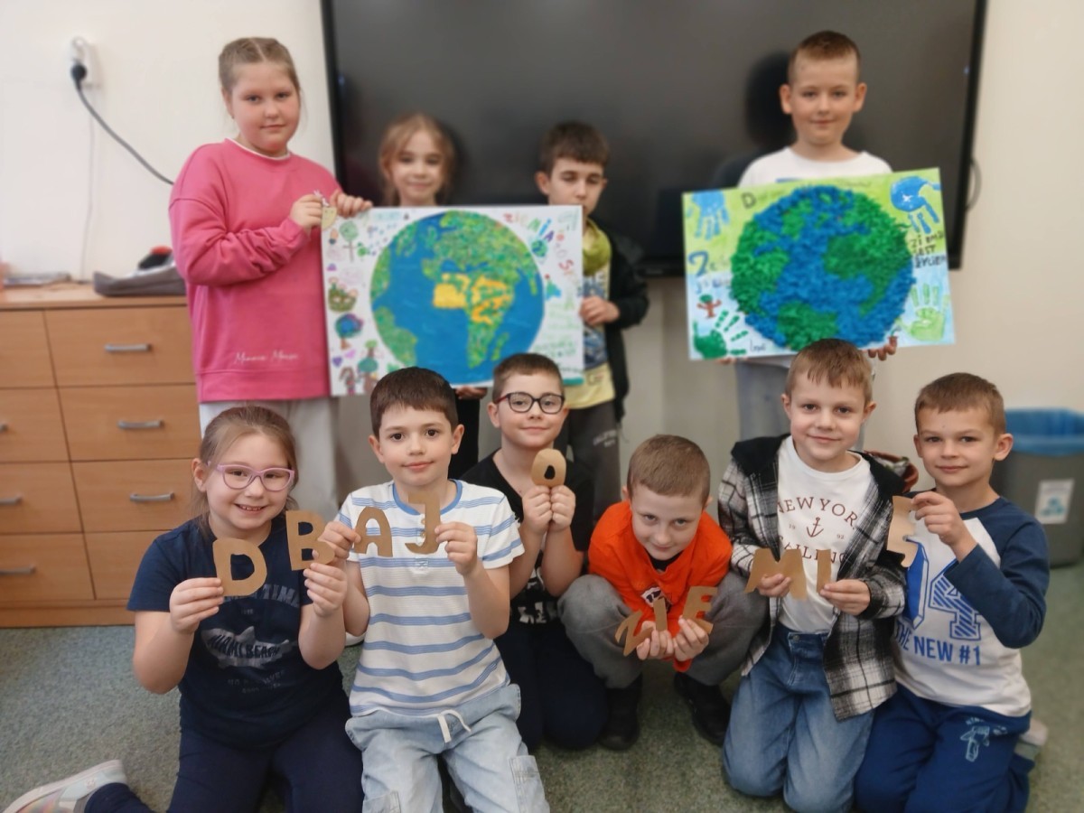 W dniach 20–22 kwietnia 2026 r. nasza szkoła zamieniła się w zieloną krainę pełną ekologicznych wyzwań. Podczas lekcji przyrodniczych rozmawialiśmy o tym, jak każdy z nas może pomóc planecie. Klasy 1 i 2 stworzyły przepiękne prace plastyczne, a klasy 3 udowodniły, że poezja i ekologia idą w parze, pisząc autorskie wiersze i rymowanki. Nasz korytarz ozdobiło niezwykłe drzewo, na którym zakwitły listki z życzeniami od uczniów dla Ziemi. Dnia 22 kwietnia solidaryzowaliśmy się z naturą, zakładając stroje w kolorach zielonym, niebieskim i brązowym. Na zakończenie akcji klasy młodsze otrzymały Certyfikaty Przyjaciela Ziemi.