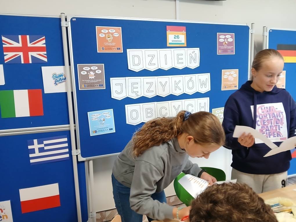 Dnia 25 września 2025 r. nasza szkoła odbyła prawdziwą językową podróż po świecie. W klasach odbywały się quizy dotyczące języka i kultury różnych krajów – uczniowie mogli sprawdzić swoją wiedzę, odkryć ciekawostki i przekonać się, jak fascynujący jest świat języków. Na korytarzu przygotowaliśmy stoiska językowe, przy których czekały gry, zagadki i quizy. Uczniowie łączyli flagi z państwami, rozpoznawali języki, a także sprawdzali się w różnorodnych zadaniach, które pokazały, jak wielkie bogactwo kryje się w różnorodności kultur.