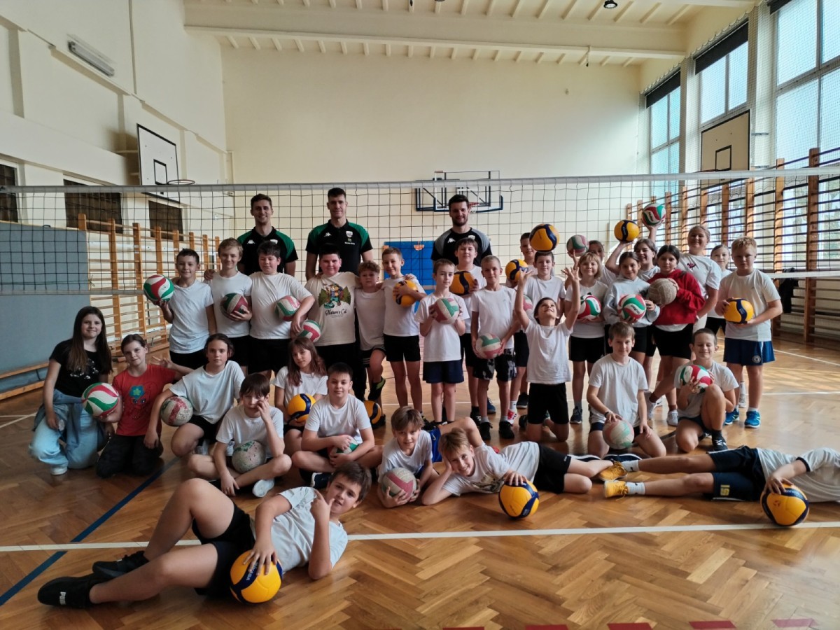 Dnia 21 października 2025 r. gościliśmy siatkarzy ligowych BBTS Bielsko-Biała, którzy poprowadzili zajęcia sportowe z piłki siatkowej z klasami młodszymi i starszymi. Było to doskonałe przygotowanie dla zespołu chłopców kl. 5-6, którzy dobrze zaprezentowali się na Mikołajkowym Turnieju Minisiatkówki, który został przeprowadzony 4 grudnia 2025 r. na hali przy ul. Widok. Na startujące 24 zespoły nasza "trójka" - w składzie Kamil Wójtowicz, Jan Walczak i Szymon Koperniak - zajęła 9 miejsce!
