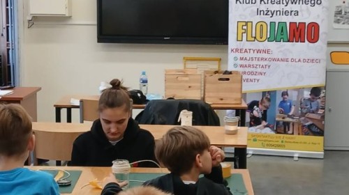 W ramach udziału w konkursie „Szanuj energię, chroń klimat” uczniowie klasy 5c wzięli udział w inspirujących warsztatach przygotowanych przez FloJaMo