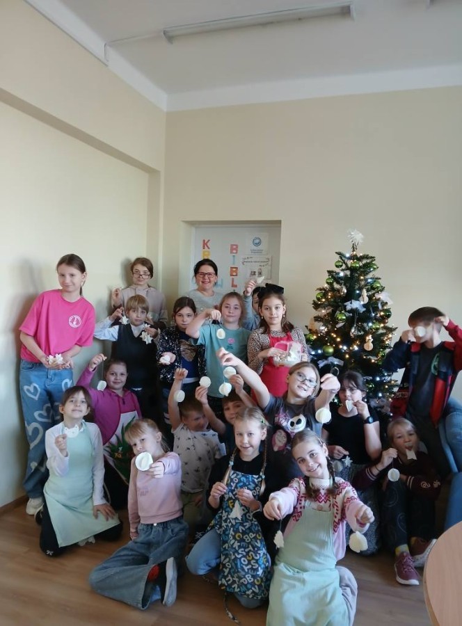 W bibliotece szkolnej odbyły się warsztaty etnograficzne. Poprowadziła je p.Anna Kolber, która przybliżyła uczniom historię tworzenia ozdób z opłatka, czyli tak zwanych światów. Kiedyś wieszano je pod sufitem w okresie Bożego Narodzenia, bo uważano, że chronią dom i przynoszą pomyślność. Ich okrągły kształt miał symbolizować harmonię. Uczniowie dowiedzieli się także wielu ciekawostek o wypiekaniu opłatków. Dawniej używano do tego żelaznych form, często misternie zdobionych. Opłatek nie był tylko dodatkiem do Wigilii, ale znakiem zgody – zanoszono go sąsiadom, by zakończyć wszelkie spory przed świętami.