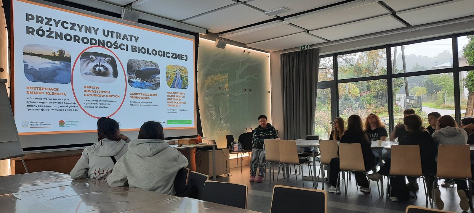 Dnia 9 października 2025 r. klasa 8b uczestniczyła w interesującym wykładzie oraz wzięli udział w przyrodniczych warsztatach terenowych w Centrum Edukacji Ekologicznej "Ekosynteza".