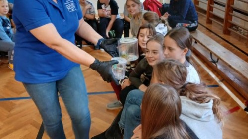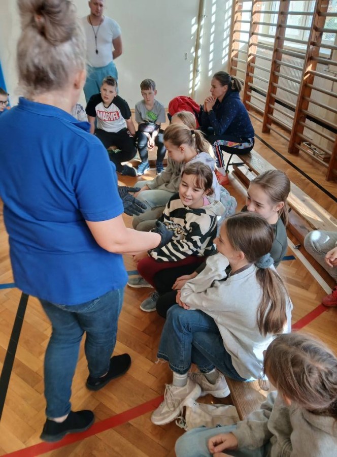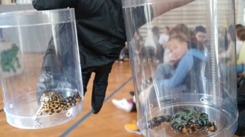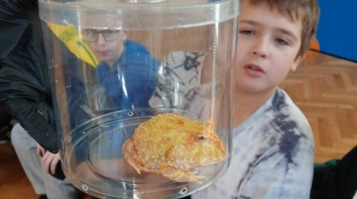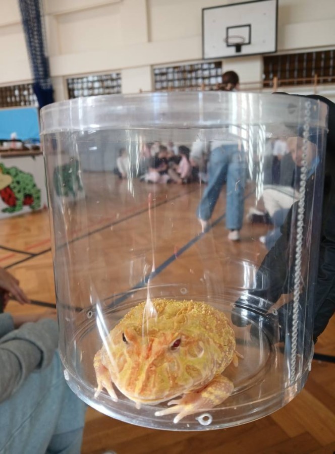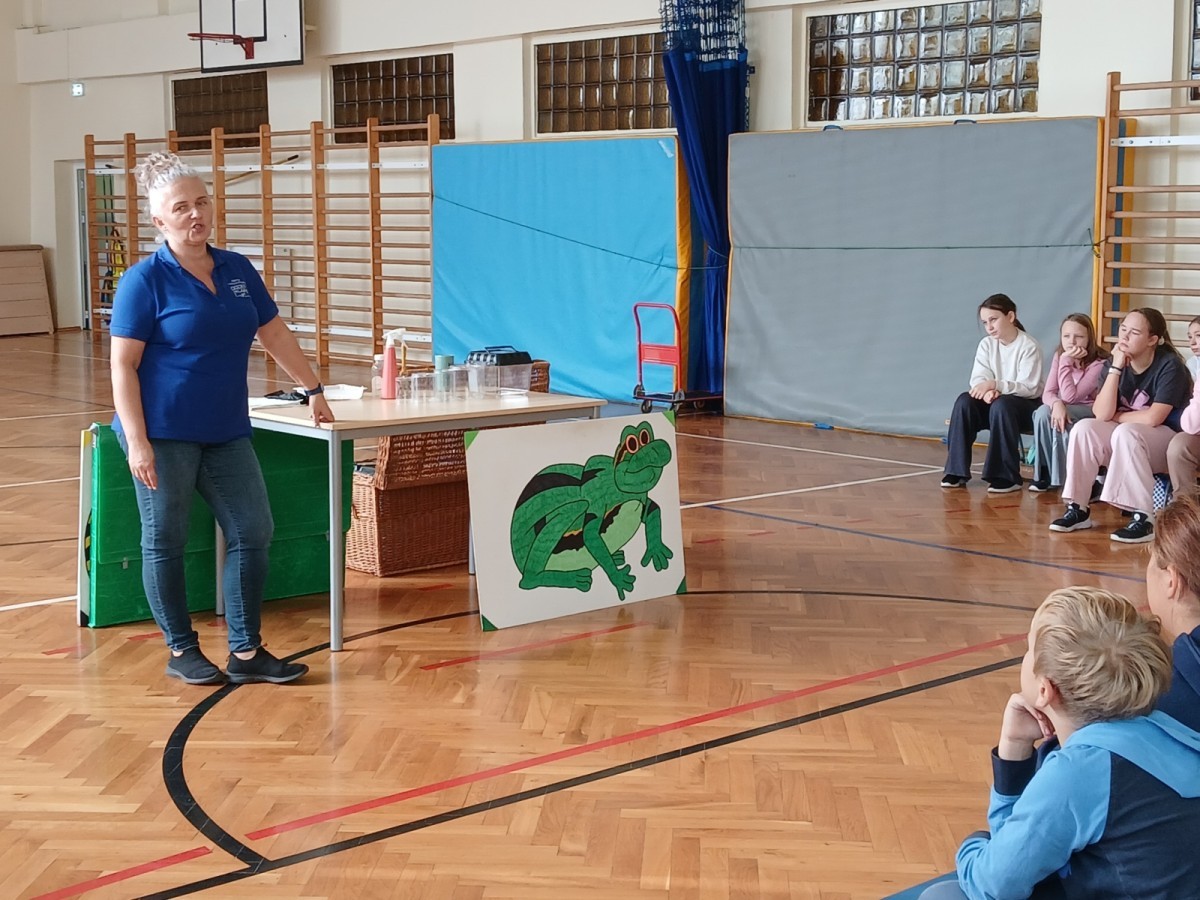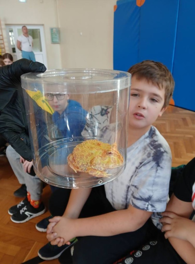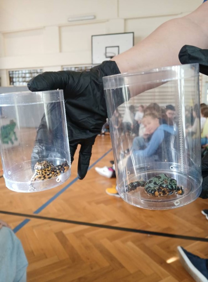 Dnia 28 listopada 2025 r. uczniowie klas 5 i 6 uczestniczyli w nietypowej lekcji biologii, podczas której poznali fascynujący świat płazów. W czasie zajęć mogli z bliska przyjrzeć się tym niezwykłym stworzeniom, poznać ich budowę, dowiedzieć się o ich zwyczajach i roli w przyrodzie. Wielu uczniów po raz pierwszy miało możliwość obejrzeć płazy z bliska!